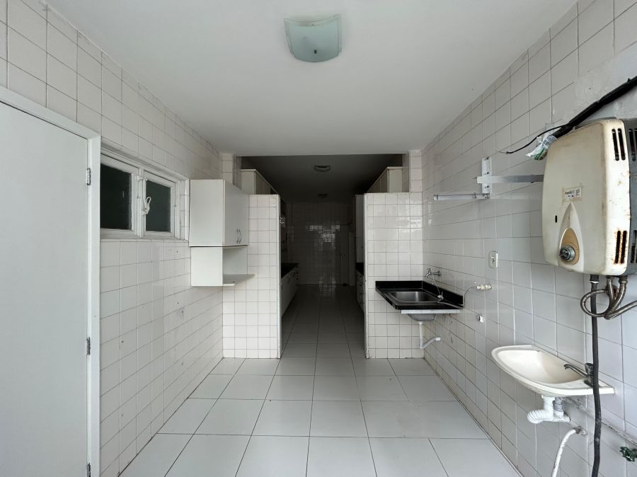 * Área de serviço completa, com banheiro, além de dependência de empregada com banheiro.