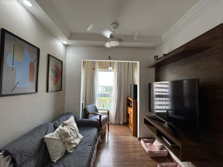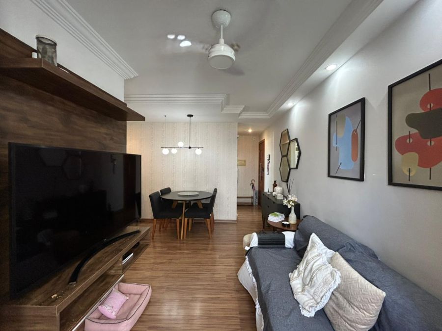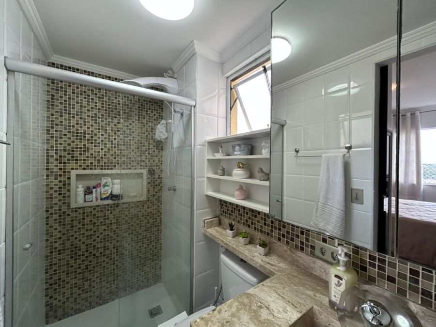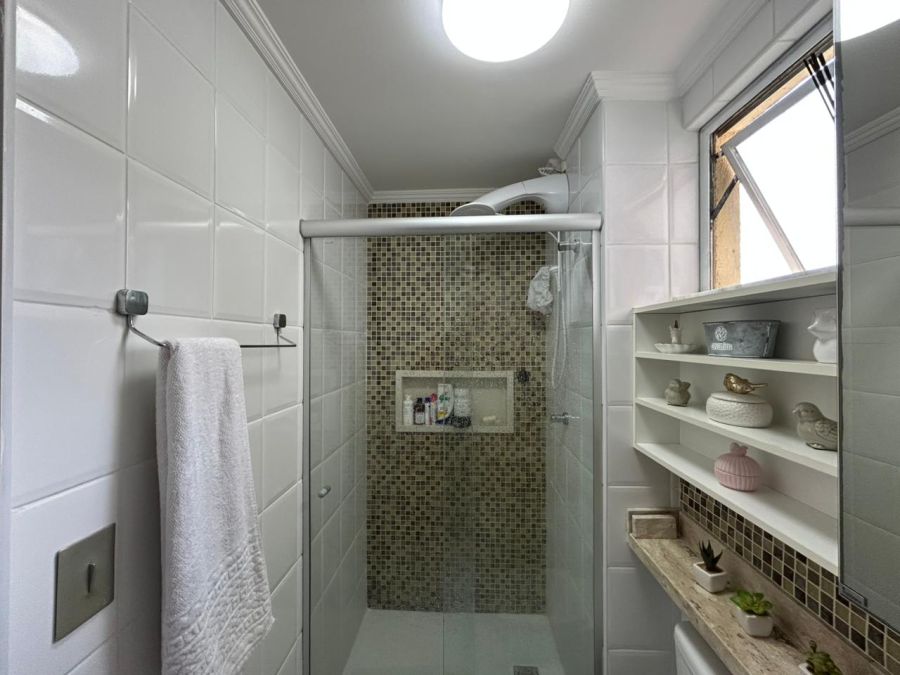 Apartamento com 52m², 2 quartos (1 suíte), 2 banheiros, sala integrada e 1 vaga de garagem. Ambientes bem distribuídos e com excelente ventilação.
