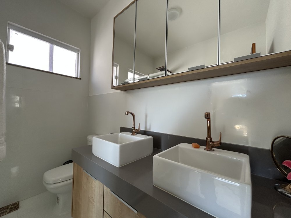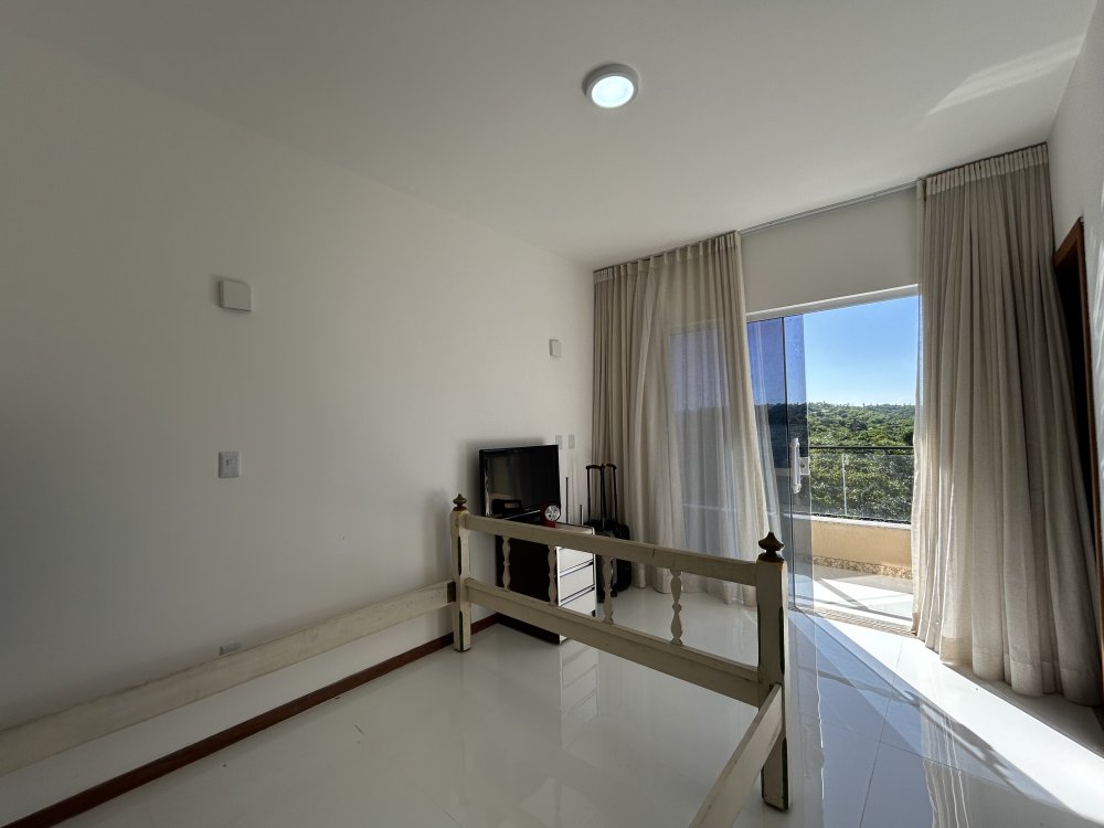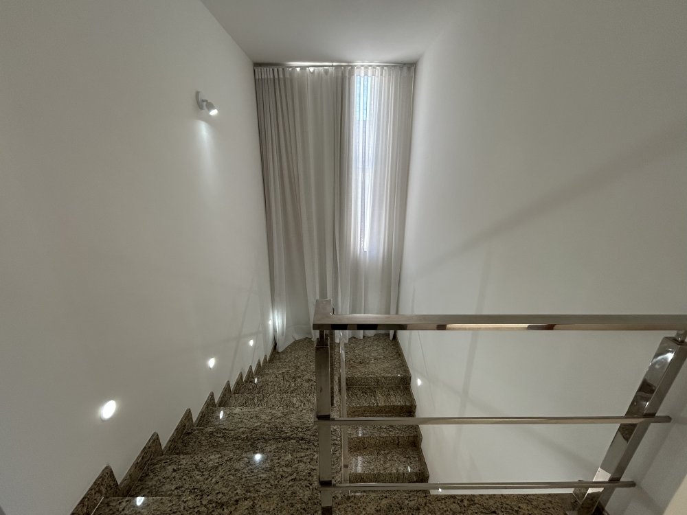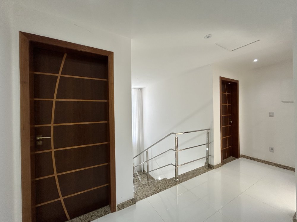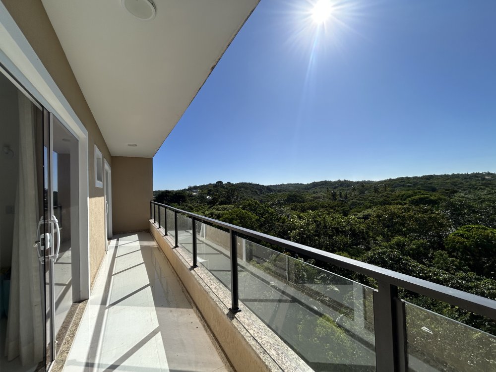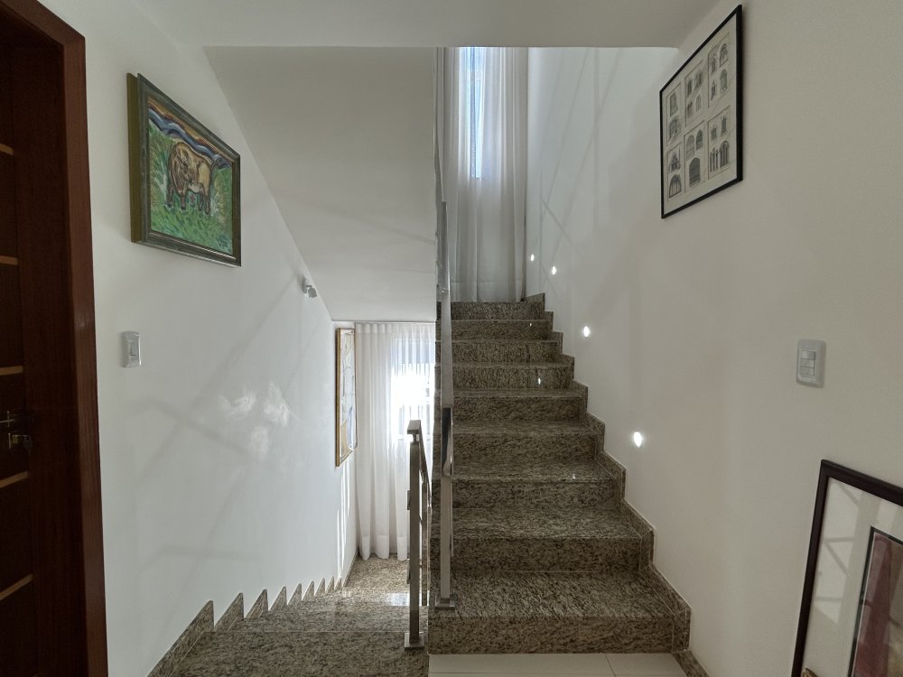 Três suítes no pavimento superior, todas com varandas, sendo uma suíte master com closet e varanda exclusiva.